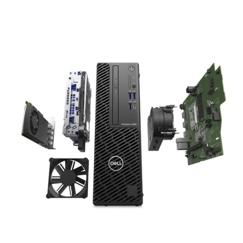 | DELL Precision 3460 SFF; 13th Generation Intel Core i7-13700 (30MB Cache, 16 Core (8+8), 21GHz to 5 2GHz (65W); 16 GB | 1 x 16 GB, DDR5; 512GB PCIe NVMe(TM) Gen4 M2 SSD; 8x DVD+/-RW 95mm; NVIDIA T10 00, 4 GB GDDR6, low profile, 4 mDP to DP adapters; Dell Multimedia Keyboard-KB216 – French (AZERTY) – Black; Dell Optical Mouse-MS116 – Black; Windows 11 Pro; 3 ans ProSupport and Next Business Day On site Service |